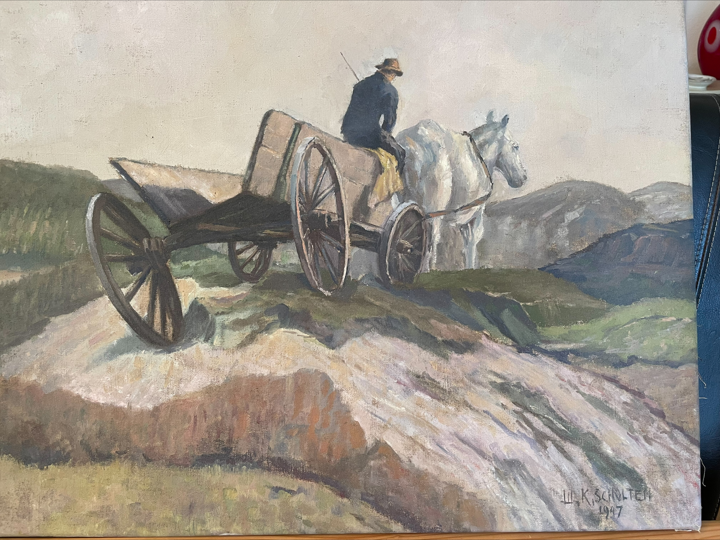 Olieverfschilderij Paard en wagen