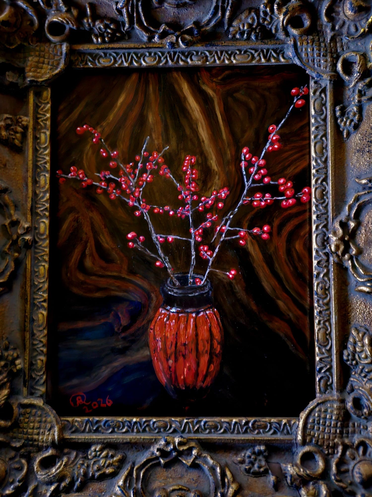 - VH = het schilderij is afgewerkt met hoogglans vernis (altijd Talens)